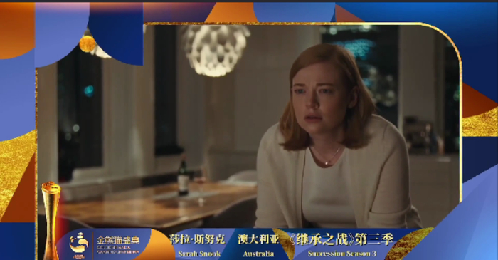 澳大利亚演员莎拉·斯努克凭借在电视剧《继承之战》第三季中饰演的希芙·罗伊一角,荣获首届金熊猫奖电视剧单元最佳女配角奖。