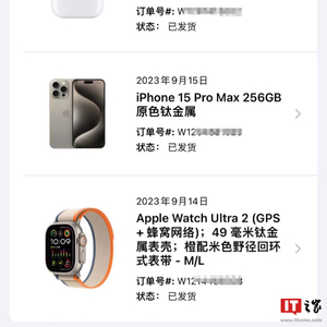 首批苹果 iPhone15 手机、Apple Watch Ultra 2 手表等新品发货