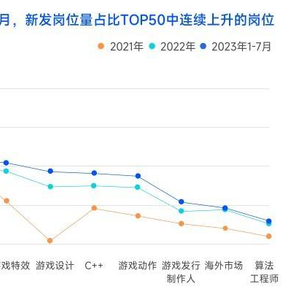 2023年,AIGC技术浪潮来袭,游戏行业率先受到冲击也率先拥抱AI。近日脉脉高聘发布《2023游戏行业中高端人才洞察》,数据显示,游戏行业算法工程师新发岗位占比三年连涨,从2021年的0.29%上升至2023年1-7月的0.58%,⾃然语⾔处理、算法⼯程师、人工智能⼯程师等⼈⼯智能技术⽅向岗位薪资连续提升,3年间涨幅超过30%。