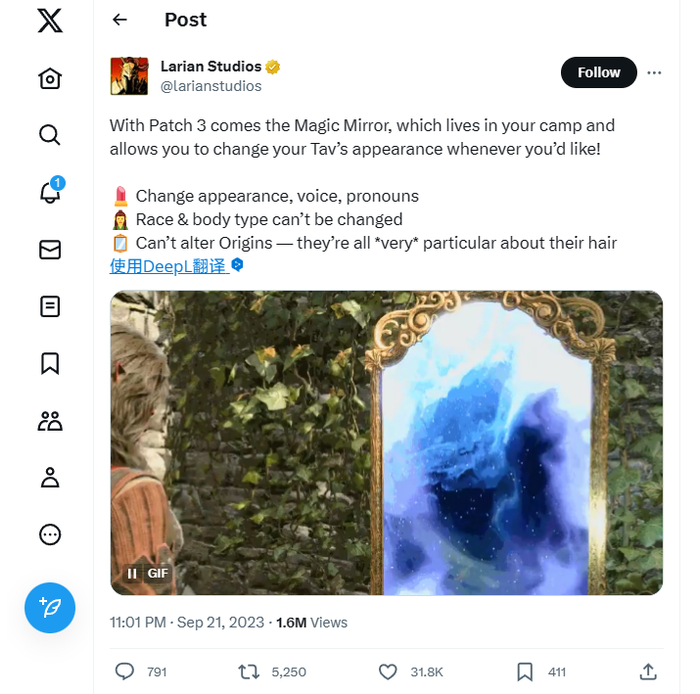 据介绍,这次补丁将在玩家的“营地”中带来一面“魔镜”,玩家可随时随地更改 Tav 的外貌、声音和代词,但无法更改种族、体型、起源角色的外貌。(IT之家注:在这之前,玩家无法在游戏过程中更改外貌,仅能在初始阶段自定义)