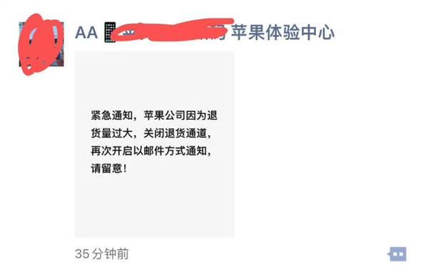 快科技9月25日消息,昨日有传言称“紧急通知,苹果公司因为退货量过大,关闭退货通道,再次开启以邮件方式通知,请留意!”