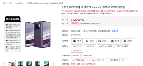 华为Mate X5也开启90天预约申购:不担心抢不到了