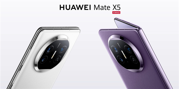 其他方面,华为Mate X5的外观基本与华为Mate X3保持了一致,外屏尺寸为6.4英寸、分辨率2504×1080,内屏尺寸为7.85英寸,分辨率为2496×2224。内外屏幕均支持1-120Hz LTPO自适应刷新率以及1440Hz高频PWM调光,提供有羽砂黑、羽砂白、羽砂金、青山黛、幻影紫五种配色。硬件配置上,该机搭载的是麒麟9000S芯片,后置5000万像素超感知摄像头(F1.8光圈)+1300万像素超广角摄像头(F2.2光圈)+1200万像素潜望式长焦摄像头(F3.4光圈,OIS光学防抖)影像模组,其中长焦摄像头支持5倍光学变焦和50倍数字变焦。此外,该机内置5060mAh高硅负极大电池,支持66W有线和50W无线超级快充,支持7.5W无线反向充电。