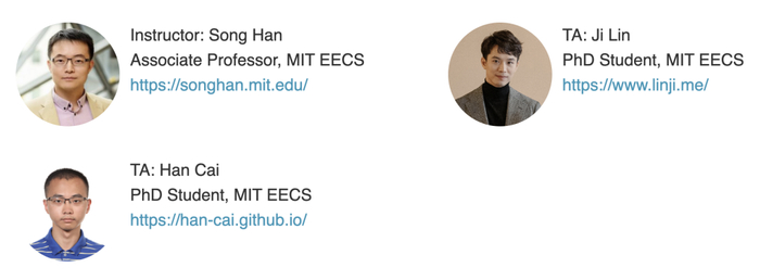 这门课程由MIT副教授韩松主讲,并由他的两位博士生林吉和蔡涵担任助教。