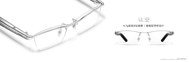 华为历时4年技术积累,在在人因、结构研究各方面领先,通过采集2000+国内外头模数据,优化结构尺寸,为消费者带来贴合舒适的佩戴体验。其中钛空款采用的β钛材质,镜框仅有4.7g,让用户享受轻盈无感佩戴体验。β钛材质还拥有出色的强度、耐腐蚀性和可塑性,提高了华为智能眼镜 2的耐用度。