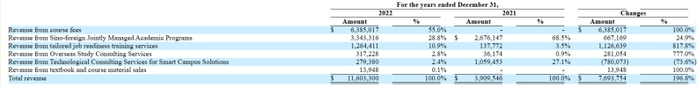 由于收购了东方智业,这部分收入也被并入到职前培训业务中。该业务2022年贡献120万美元,同比增长了8.18倍,占比也跃升至10.9%。
