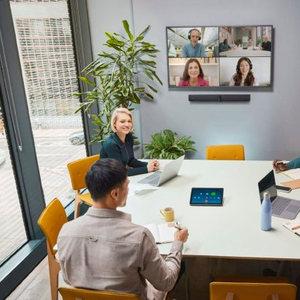 PanaCast 50系列针对中小型远端会议提供了不同的解决方案。从基础设备Jabra PanaCast 50智能音视频一体机,其主打通过自己的电脑装置连接PanaCast 50,即可享受完整的视频会议功能;到顺应更多人需要同时进行视频会议的场景所推出的PanaCast 50 Room System,其专为支持Windows系统所设计,通过将视频可见范围提升至180度全景,并搭载一触控平板控制器来方便操作,能够完整呈现多人会议画面并优化操作流程。