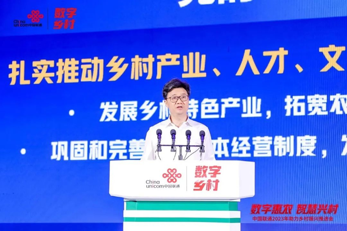 这是中国联通连续第三年举办助力乡村振兴推进会。在本次会上,中国联通总经理陈忠岳发表致辞,分享了中国联通深耕数字乡村建设的发展成效。
