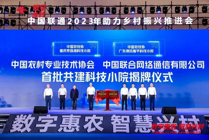 中国联通与人力资源和社会保障部教育培训中心、中国信息通信研究院、中国农村专业技术协会分别签署了相关合作协议,并揭牌了首批两个中国联通与农村专业技术协会共建的“科技小院”,即“中国农技协重庆荣昌猪科技小院”和“中国农技协广东佛冈魔芋科技小院”。