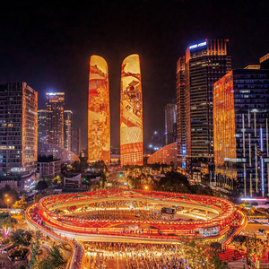 除了摩登绚丽的夜景,这里也是拍照打卡、情侣约会、潮流购物的好去处,欢迎市民群众前往上东大街的文创市集、香槟广场的“锦官驿·万千锦市”体验精致手工、汉服造型、品尝美食。双节来春熙路,体验热气腾腾的烟火气,感受别样魅力的夜生活。