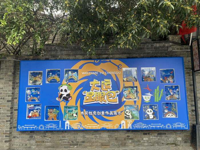 还有不少路过的游客纷纷与“显眼包”合影,两面崭新的展示墙与宽窄巷子古朴的院墙相互融合,成为一道靓丽的风景线。