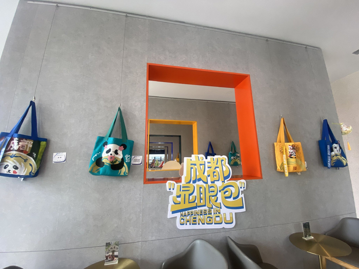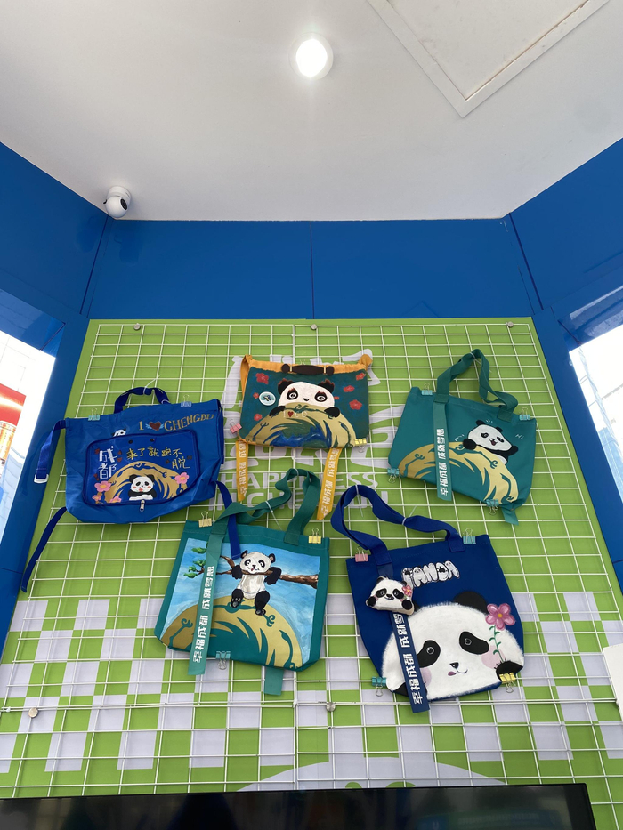 “画在包上面的熊猫好乖哦”“这种包包简直是限量版”“这个包上面还写了‘耙耳朵’,太有意思了”……中秋、国庆假期第一天,不少成都市民、游客都在春熙路、东郊记忆等城市地标地点“偶遇”了大运“显眼包”。