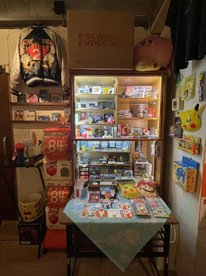 作为1984年入社的元老社员,Chokan还保留了大量珍贵的游戏周边,比如《地球冒险2》的夹克和打火机,以及所参加的任天堂棒球俱乐部的队服和夹克等,这些都可以在84 Coffee的柜子上看到。