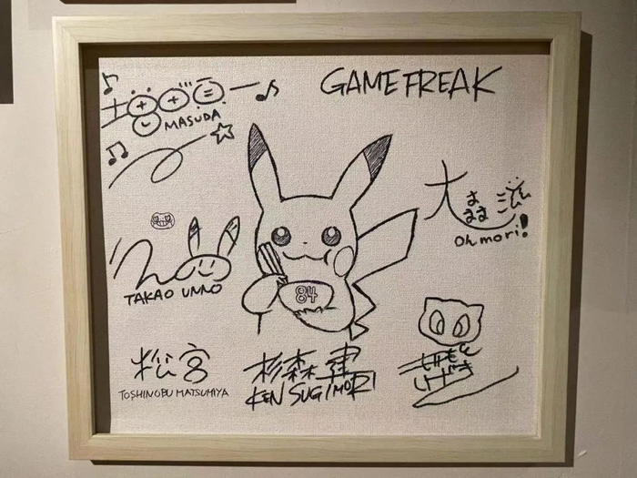 皮卡丘形象的设计者西田敦子不仅留下了签绘,还为84 Coffee设计了一个可爱的吉祥物;一个拆解的Game Boy上则留有作曲家田中宏和的签名,FC和Game Boy上大多数游戏的音乐都由其领导创作......