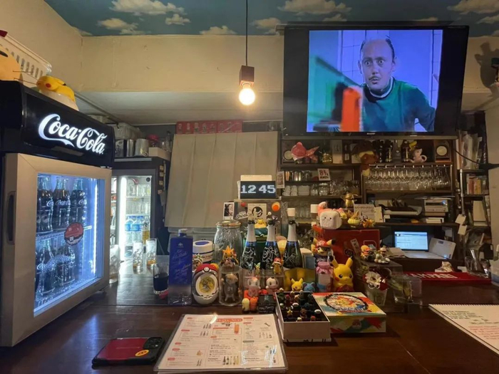 84 Tour当然不只有各种签名和周边,在柜台处也可以看到一台电视,上面滚动播放着任天堂早期的各种电视广告,很多都是任天堂进军游戏业务之前的广告,咖啡馆内也收藏了一些任天堂早期的业务产品,比如花札等玩具,很有时光穿梭之感。