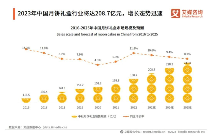 放眼月饼市场,单是礼盒市场的规模,在2022年已经达到188.7亿元,预计在2024年增加到228.3亿元。其中,86.2%消费者表示会购买礼盒装月饼,且对礼盒包装的精致度有较高要求。