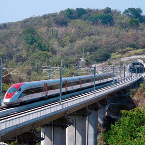 雅万高铁连接印尼首都雅加达和旅游名城万隆,线路全长142.3公里,最高运行时速350公里,设有哈利姆、卡拉旺、帕达拉朗、德卡鲁尔4座车站。