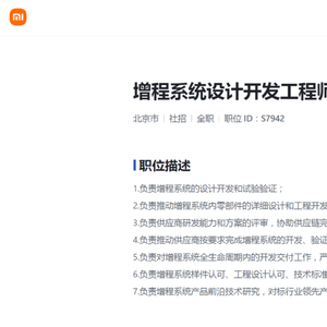 招聘平台上,小米汽车也放出了相关的研发岗位,包括:增程系统设计开发工程师、燃油系统工程师、排气系统工程师等增程式电动车相关岗位。