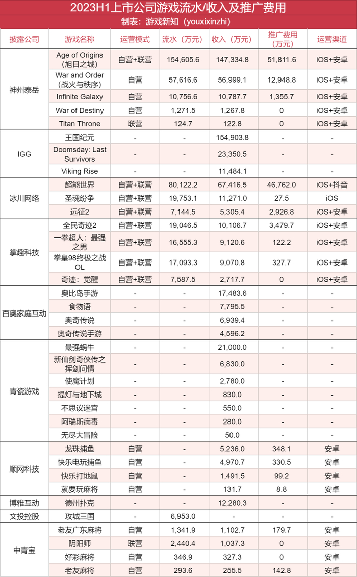 注:下表中披露的流水不代表游戏全渠道总流水,仅代表公司自身渠道的流水,具体情况需结合「运营模式」来区分。