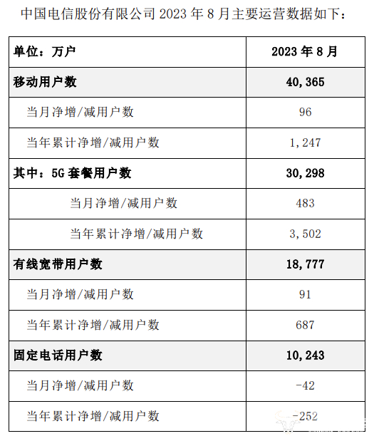 值得一提的是,中国电信还公布了固定电话用户数,累计用户数达10243万户,相比上月减少42万户。