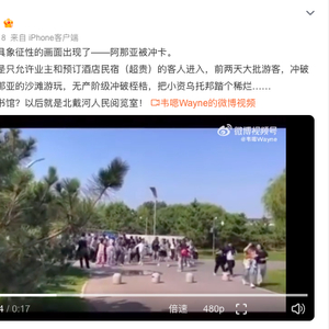 10月5日,有微博网友发布视频爆料称,国庆期间,有大批游客冲破栅栏进入阿那亚的沙滩游玩。10月6日,有网友发布抖音视频显示,三丰浴场与阿那亚沙滩之间拉起了铁网,不少游客踏入海水绕过铁网,翻越进阿那亚沙滩。