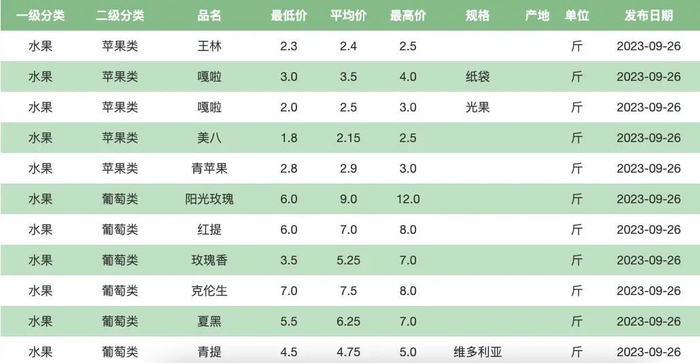 新发地价格行情表