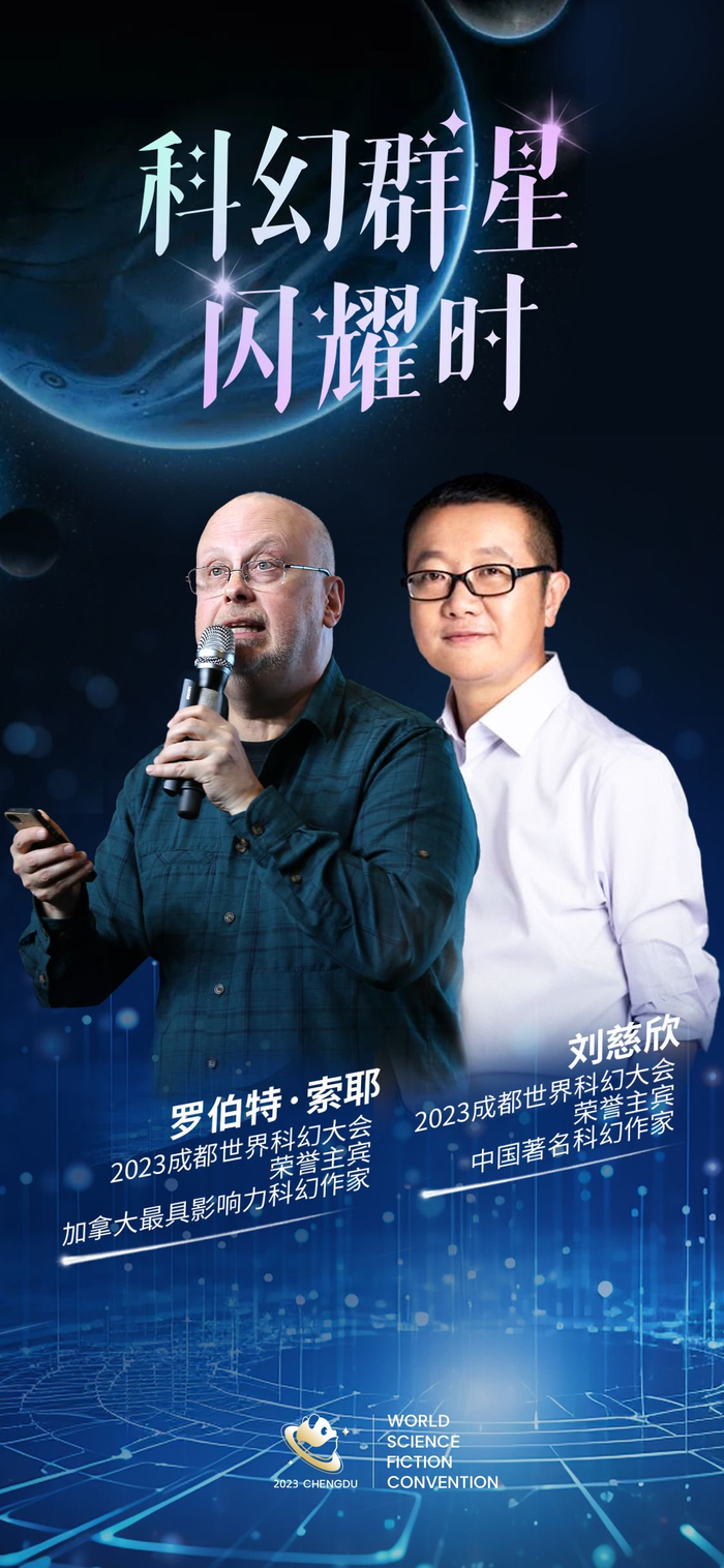 加拿大著名科幻作家罗伯特·索耶和中国著名科幻作家刘慈欣,作为2023成都世界科幻大会的荣誉主宾,也作为东西方硬科幻的代表人物,无疑将是现场幻迷们簇拥的“焦点明星”。