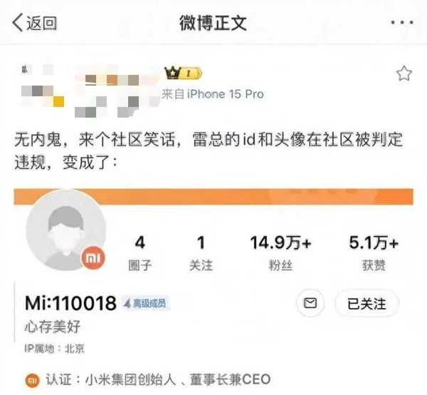 雷军被小米社区封号?回应:清理违规账号误杀 已恢复