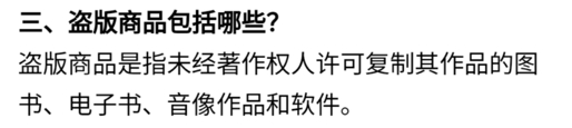 但现状就是,各大电商平台里的各类商家打着“正版”的旗号卖到断销,即便他们压根就不认识萝卜刀的原作者是谁。随手打开一个商品页面,你能很轻易地找到所谓的“假一赔四”正品保障服务,点开二级页面,“正品”的定义被放在了三级页面,而在三级页面里,盗版商品的定义是这样的: