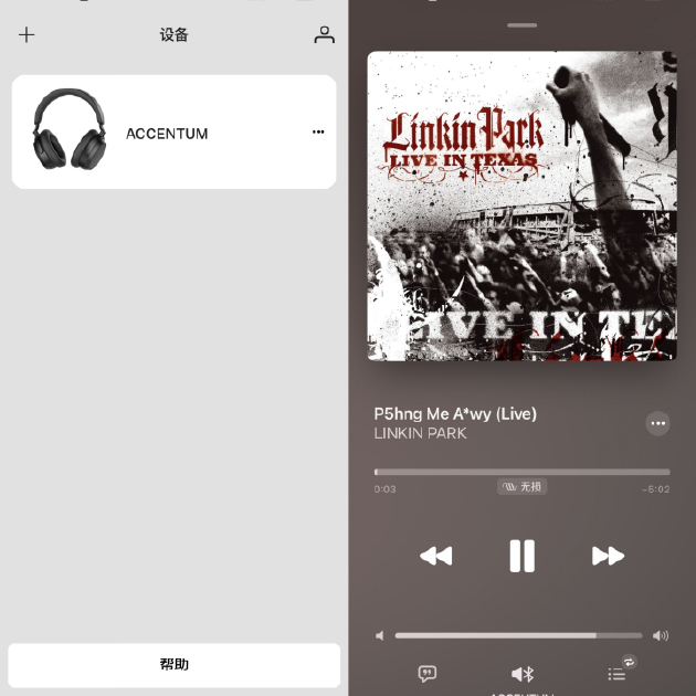 我们全程都是将ACCENTUM与iPhone通过蓝牙连接,使用Apple Music的高质量音乐,AAC解码器,这也是多数人会使用的场景。