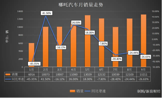最新数据显示,哪吒汽车9月份销量同比下滑超26%,是头部造车新势力中唯一一个下滑的车企,而这也是哪吒汽车自6月以来连续第四个月销量下滑。