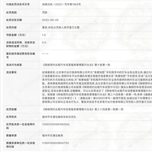 记者注意到,针对高德类似的处罚在省内以及外省还不少。根据信用中国公布的行政处罚结果,同样是在近日,铜陵市交通运输局就北京易行出行旅游有限公司未取得《网络预约出租汽⻋经营许可证》,擅自从事或者变相从事网约⻋经营活动开出10000元的罚单。此前,南平市道路运输事业发展中心也发布过通报,针对高德打车涉嫌变相从事网约车经营活动的问题,要求高德打车立即整改。