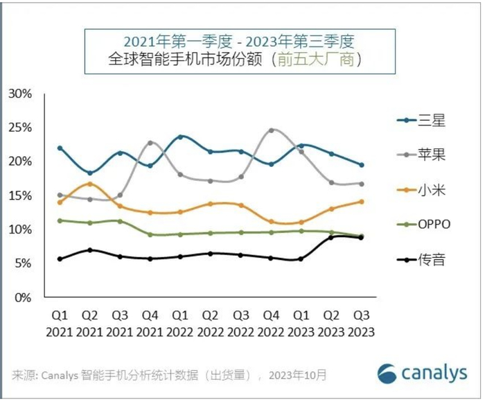 Canalys 2023Q3全球智能手机市场报告发布 小米市场份额创两年来新高