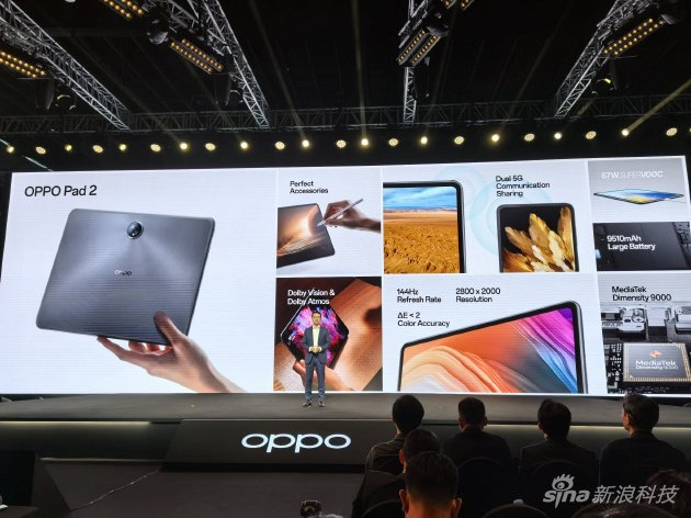 最后,OPPO还为海外用户带来了OPPO Pad 2,主打设计和好屏。其搭载天玑9000处理器,屏幕比例为7:5,支持最高144Hz刷新率,支持杜比世界与杜比全景声,其电池容量为9510mAh,并支持67W充电。