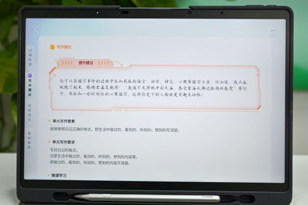 语文作为主观题较多的科目,在学习机产品还是以课程为主,辅学功能中最有代表性的便是作文批改。