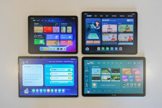 左上:学而思学习机XPad;右上:步步高学习机S7 左下:科大讯飞AI学习机T20 Pro;右下小度学习平板Z20 Plus高思豪华版