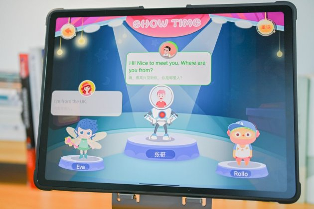 学而思XPad仅在启蒙阶段提供口语AI互动课程,形式类似情景剧中用口语回答简单问题。