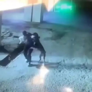 监控视频显示,一名老人与一名儿童在地库突然遭一条恶犬撕咬。这条狗先是扑向小孩,老人迅速抱起小孩后,狗继而扑向老人,后两名男子帮忙才将狗撵走。