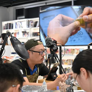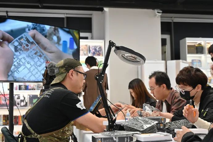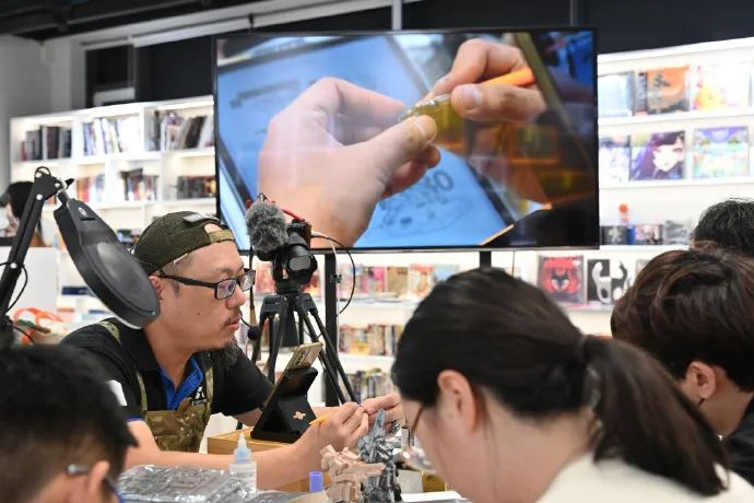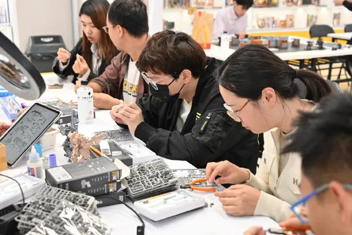 为了帮助大家对模型涂装也能有进一步的了解,社友局现场还设立了涂装体验区,邀请了曾在《流浪地球2》担任特效拍摄模型涂装师的吴迪老师,为社友们现场演示并教学模型涂装。