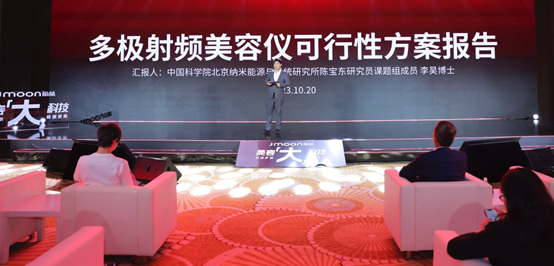 极萌美容【大】科技峰会特别邀请北京纳米能源与系统研究所陈宝东研究员及课题组成员李昊博士携手极萌揭晓多极射频美容仪可行性方案。