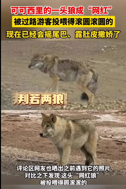 判若两狼!野狼被投喂后成“网红”,专家提醒