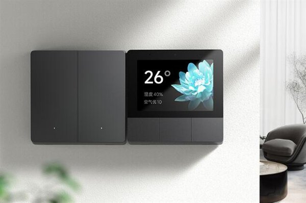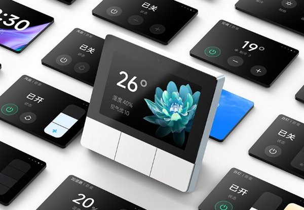 据介绍,小米智能家庭面板配备3.23英寸臻彩触控屏,集智能开关、中控屏、小爱同学、蓝牙 Mesh 网关于一身,家中照明、环境、插座、窗帘等设备状态一目了然。