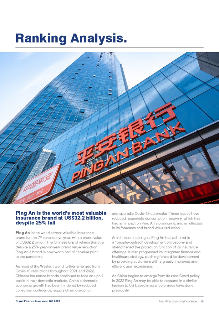 美国保险品牌推动进一步增长,品牌总价值增长 10%