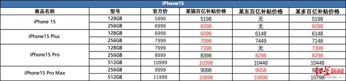 三大电商平台百亿补贴频道支持商品多有重合,但补贴力度不一。手机无疑是每年双11的爆品,尤其是iPhone15新机近期热度居高不下。