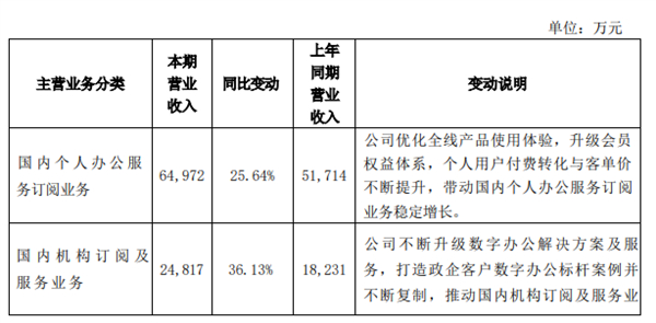 主要业务方面,三季度金山办公国内个人办公服务订阅业务营收6.49亿元,同比上涨25.64%;国内机构订阅及服务业务营收2.48亿元,同比增长36.13%。