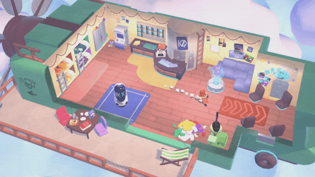 正式出发前的大本营是一艘空艇,上面有许多可以互动的小物件,包括一只可爱的小黑猫。