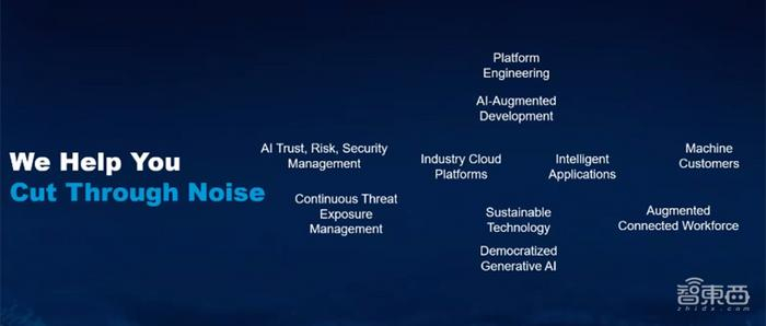 智东西10月26日报道,Gartner于10月16日公布2024年企业机构需要探索的十大战略技术趋势,包括:1、全民化的生成式AI;2、AI信任、风险和安全管理;3、AI增强开发;4、智能应用;5、增强型互联员工队伍;6、持续威胁暴露管理;7、机器客户;8、可持续技术;9、平台工程;10、行业云平台。