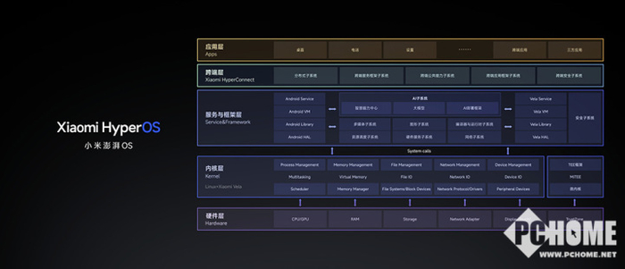 小米澎湃OS的底层核心系统,由Linux和自研Xiaomi Vela融合而成,极佳的异构兼容性和精准强悍的系统资源管理能力,让每一台设备都能发挥最佳性能。小米澎湃OS底层支持200余个处理器平台,20余种常见文件系统,覆盖数百种设备品类、数千SKU,可依据硬件灵活配置、灵活运行、弹性部署——兼容的设备RAM大小,小至64KB,大至24GB。基于不同硬件仅配置必需资源的原则,配合底层IO技术栈的文件去重和压缩,小米澎湃OS天生轻巧:在手机端,小米澎湃OS的系统固件占用可低至8.75GB,远远低于竞品。
