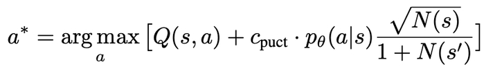 该公式偏好拥有高 Q 值与低访问量的子树,因而能较好平衡 exploration 和 exploitation。
