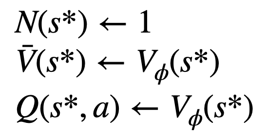 3. 评估该节点的价值。该步使用 PPO 的价值模型进行推断。该节点及其子边上的变量初始化为: